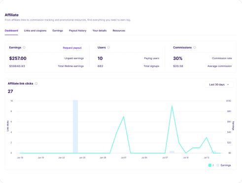 We don’t have a fixed payout schedule, so whenever you want to withdraw from your balance, all you need to do is request a payout via your affiliate dashboard. Payments are processed quickly and sent via your preferred method.