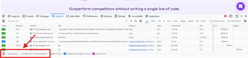 - Refresh the page to see all HTTP requests made during the load.