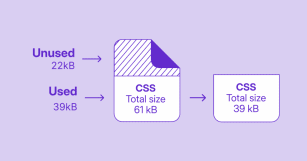 Say a page has 1,000 DOM elements and a stylesheet with 1,000 CSS selectors. The browser performs around 1,000,000 matching operations. But if half those selectors are unused and removed, that’s 500,000 fewer operations, cutting rendering time significantly.